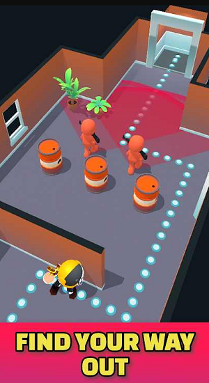 通过点击屏幕控制特工行动轨迹,在布满监控设施的场景中完成机密情报获取。鲜红色警示区域代表监控范围,玩家需运用战术思维规划移动路线。把握守卫巡逻的时间差,利用集装箱、通风管道等场景元素进行隐蔽移动。每个关卡都考验着玩家对时机的判断力和空间记忆能力。