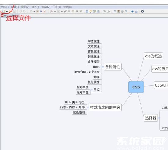 1、启动XMind应用程序并打开目标文件,在界面顶部导航栏定位「文件」功能模块