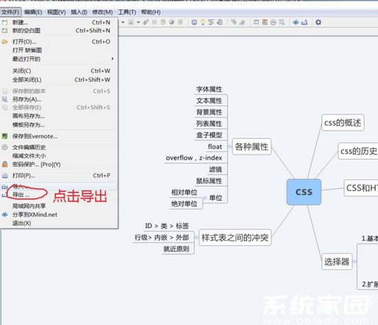 2、展开下拉菜单后选择「导出」二级选项,系统将弹出格式选择界面