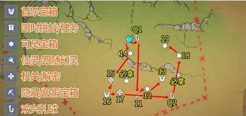 1. 秘境东南角存在隐藏锚点区域,该处不仅包含常规宝箱,更藏有特殊礼球道具。建议携带岩元素角色探索,部分宝箱需要击碎特殊岩体方可显现。