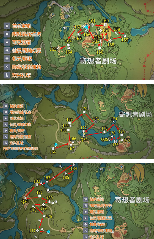 寄想者巨长区域的30个宝箱集中考验战斗能力,建议队伍配置强力治疗角色。击败区域首领后可激活中央密室,内含珍贵华丽宝箱。