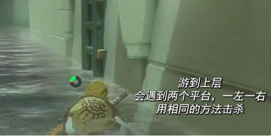 4、完成首波清敌后,沿平台边缘潜游寻找隐藏阶梯。建议采用Z字型游泳路线可快速定位攀爬点。