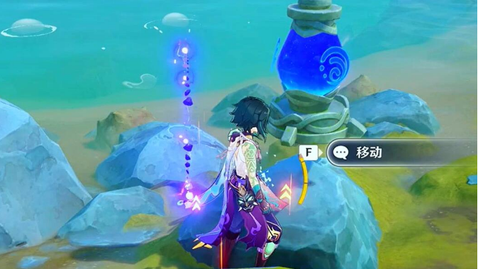 3. 携带储能装置前往湖底基座,当装置与基座产生元素共鸣时会触发特殊交互选项,此时需要迅速完成确认操作