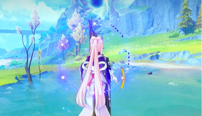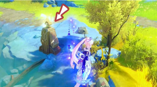 6. 当三座机关柱完成校准后,返回水域中心位置将触发共鸣反应,此时珍贵宝箱的防护结界会自动解除