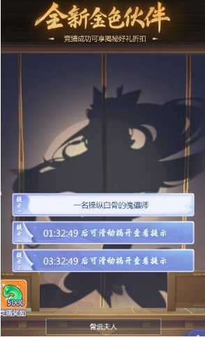 首条线索指向"操控白骨的傀儡大师",暗示新角色与幽冥法术存在关联。后续两条滑动解谜线索通过交互操作逐步释放信息,最终指向幽冥界域中精通傀儡术的传奇人物。