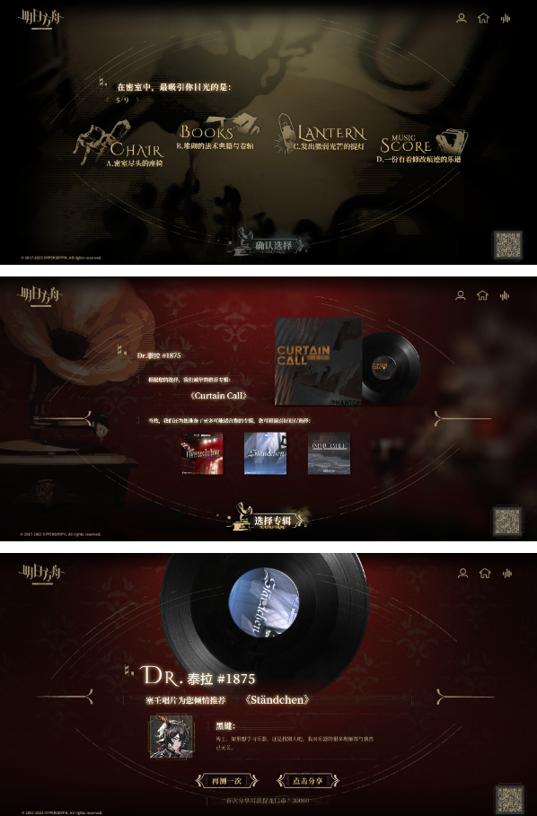 活动采用多分支叙事结构,玩家通过音乐风格选择影响剧情走向。每次完成乐章匹配后可获得心灵共鸣点数,累积300点即可兑换30000龙门币基础奖励。进阶奖励需完成全部12组音轨解谜,每解开一组音轨将解锁对应角色的限定语音档案。
